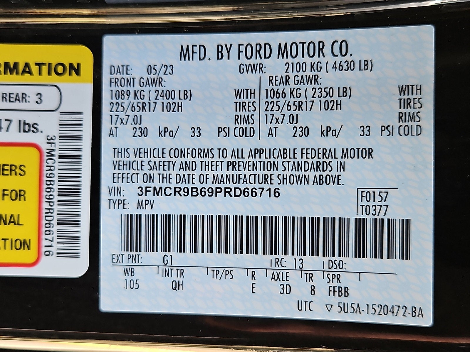 - Vehicle Name: Ford Bronco Sport
