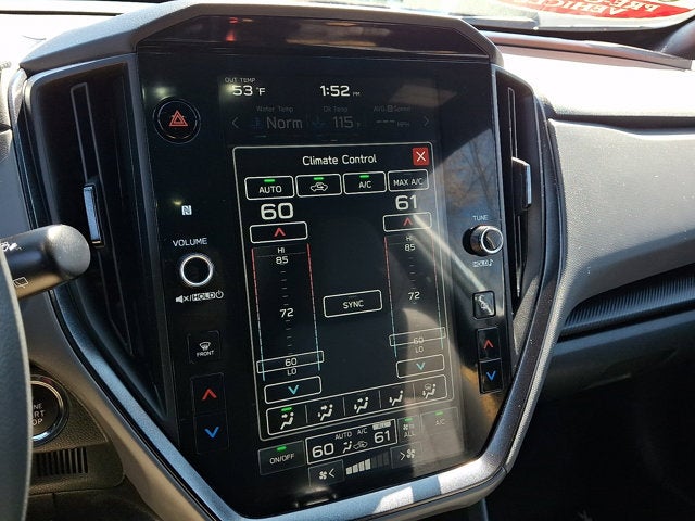 AUTO-DIMMING MIRROR W/COMPASS & HOMELINK -inc: Part number H501SFN000, LED UPGRADE -inc: Part number H461SFL060, STANDARD MODEL, GRAY W/YELLOW STITCHING SPORT CLOTH UPHOLSTERY, REAR BUMPER COVER -inc: Part number E771SFN000, CRYSTAL WHITE PEARL, AUTO-DIMMING EXTERIOR MIRROR W/APPROACH LIGHT -inc: Part number J201SFN000, ALL-WEATHER FLOOR LINERS -inc: Part number J501SFN000, AERO CROSSBAR SET -inc: Part number SOA843X036, All Wheel Drive, Power Steering, ABS, 4-Wheel Disc Brakes, Brake Assist, Brake Actuated Limited Slip Differential, Aluminum Wheels, Tires - Front Performance, Tires - Rear Performance, Temporary Spare Tire, Heated Mirrors, Power Mirror(s), Integrated Turn Signal Mirrors, Rear Defrost, Privacy Glass, Intermittent Wipers, Variable Speed Intermittent Wipers, Rear Spoiler, Power Door Locks, Daytime Running Lights, Automatic Headlights, Headlights-Auto-Leveling, LED Headlights, Automatic Highbeams, Fog Lamps, AM/FM Stereo, Satellite Radio, MP3 Capability, Bluetooth® Connection, Auxiliary Audio Input, HD Radio, Smart Device Integration, Requires Subscription, MP3 Capability, Steering Wheel Audio Controls, Bluetooth® Connection, Bucket Seats, Heated Front Seat(s), Pass-Through Rear Seat, Rear Bench Seat, Adjustable Steering Wheel, Trip Computer, Power Windows, WiFi Hotspot, Leather Steering Wheel, Remote Trunk Release, Keyless Entry, Power Door Locks, Keyless Start, Keyless Entry, Power Door Locks, Cruise Control, Adaptive Cruise Control, Climate Control, Multi-Zone A/C, A/C, Cloth Seats, Driver Vanity Mirror, Passenger Vanity Mirror, Driver Illuminated Vanity Mirror, Passenger Illuminated Visor Mirror, Floor Mats, Cargo Shade, Keyless Start, Smart Device Integration, Smart Device Integration, Requires Subscription, Power Windows, Power Door Locks, Trip Computer, Security System, Immobilizer, Cruise Control Steering Assist, Traction Control, Stability Control, Traction Control, Front Side Air Bag, Lane Departure Warning, Lane Keeping Assist, Lane Departure Warning, Front Collision Mitigation, Driver Monitoring, Telematics, Requires Subscription, Tire Pressure Monitor, Driver Air Bag, Passenger Air Bag, Front Head Air Bag, Rear Head Air Bag, Passenger Air Bag Sensor, Knee Air Bag, Child Safety Locks, Back-Up Camera